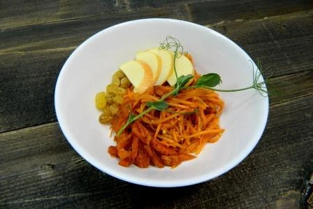 Салат из моркови, кураги и яблок в соусе 100 г